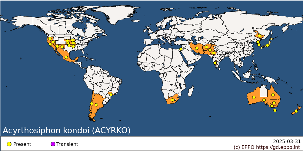 | Asia | Iran, Islamic Republic of | Present, widespread | ||