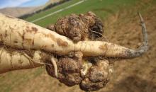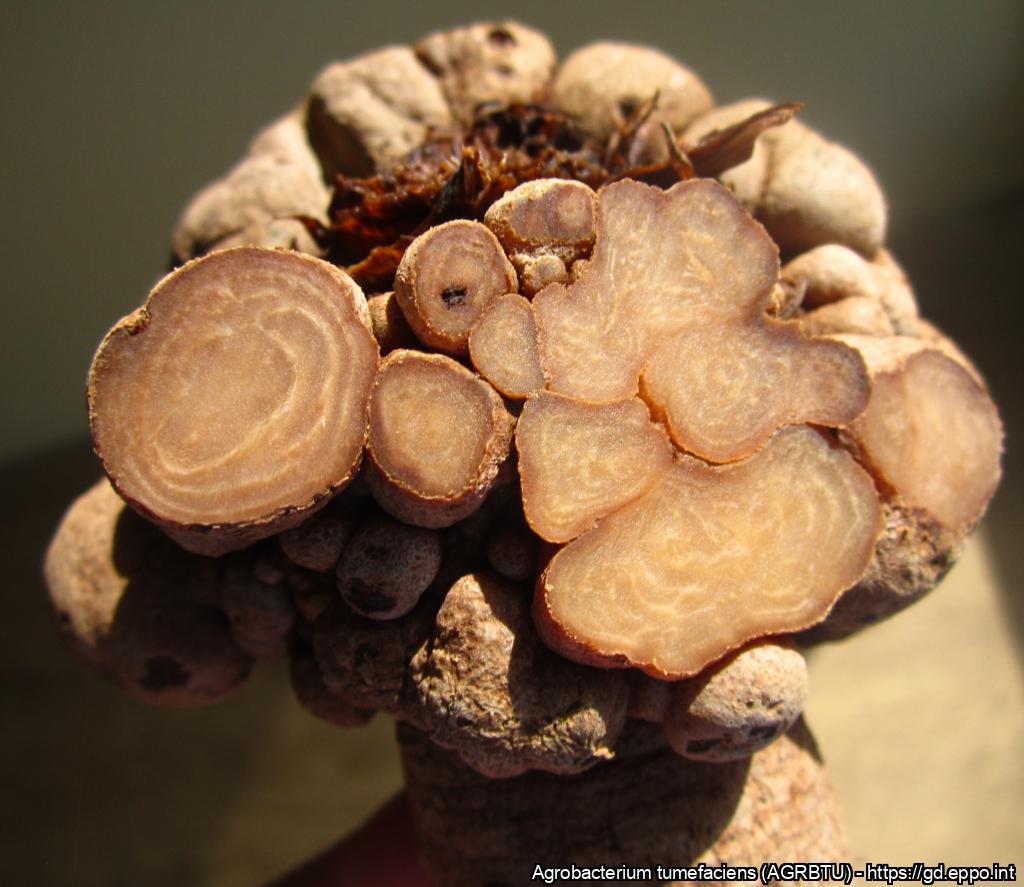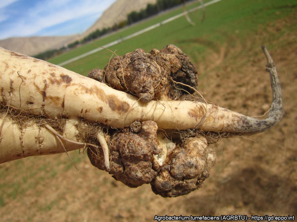 Naturally infected sugar beet tubers showing characteristic symptoms of crown gall caused by Agrobacterium tumefaciens.