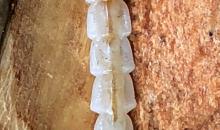 A larvae of A. planipennis under the bark of an European ash (Fraxinus exscelsior), Borisoglebsk, Voronezh Region of Russia, 2025.
