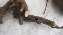 Exit holes of A. chinensis with sawdust.