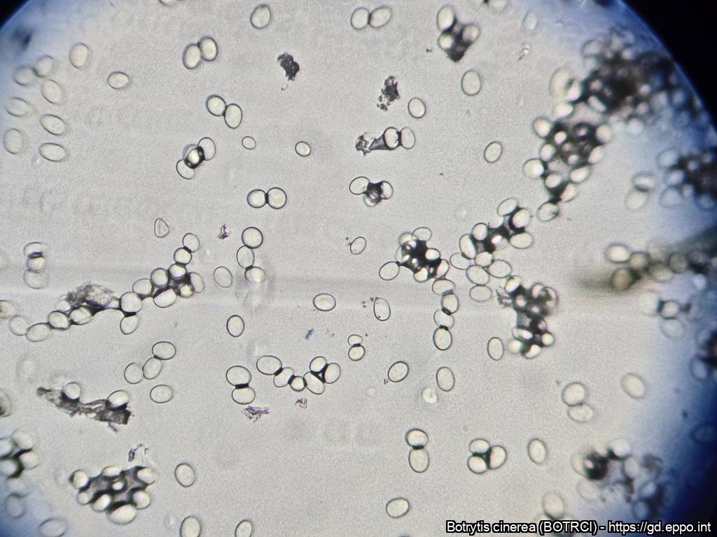 Clearly visible Botrytis conidia observed under the microscope. (December – Province of Salerno – Campania Region, 2025)
