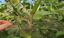 Damage caused by stem infection of Botrytis cinerea on tomato plants