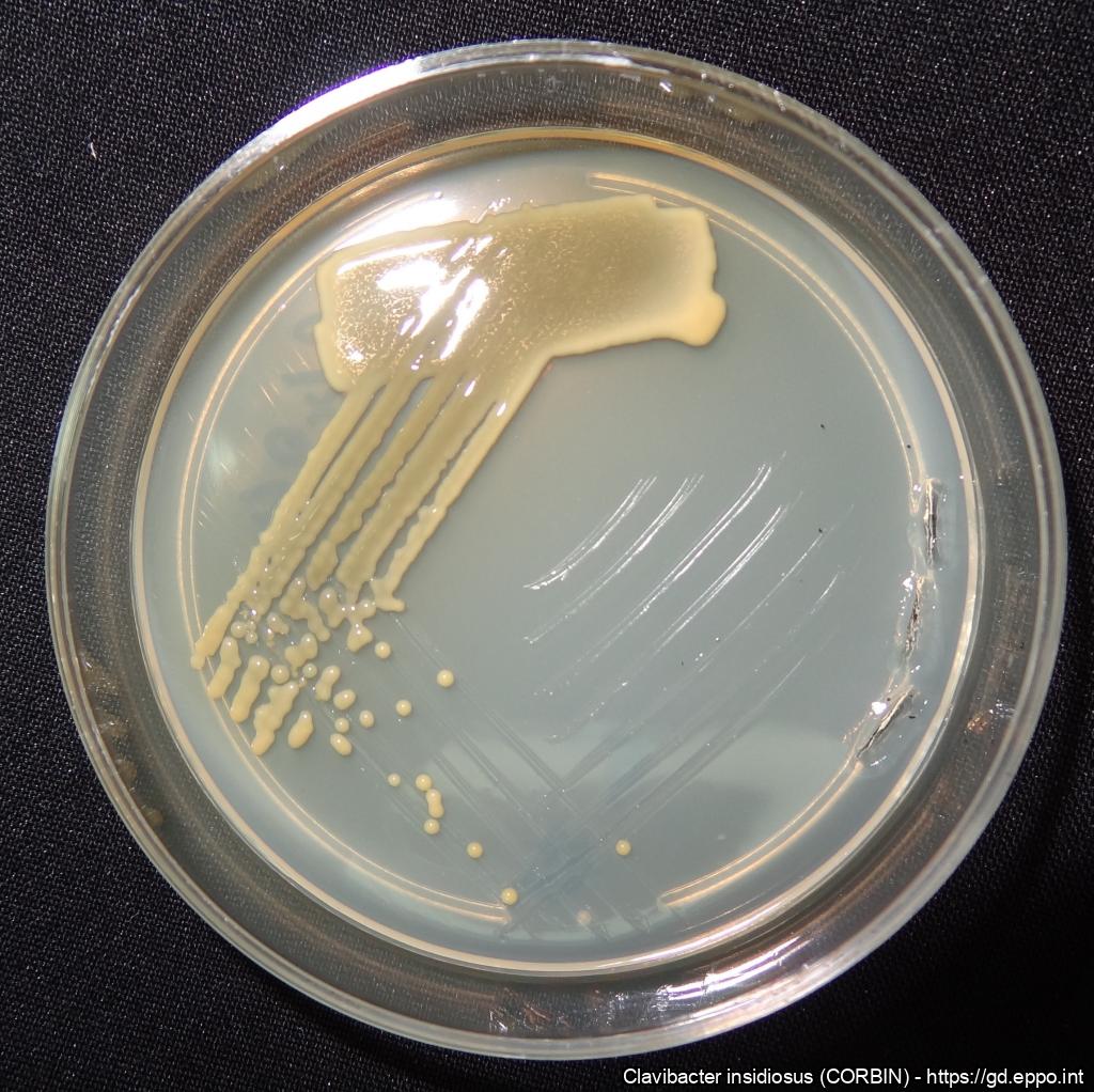 Morphology and colony characteristics of Clavibacter insidiosus strain CFBP 2404 on YPGA medium.