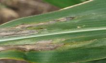 Goss' blight with freckling on maize leaf
