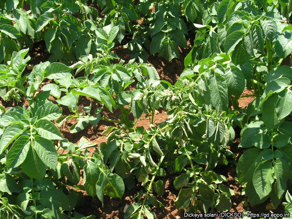 Dickeya solani: potato plant crown infection symptoms. Diagnosis confirmed by Prof. Demetrios Goumas
