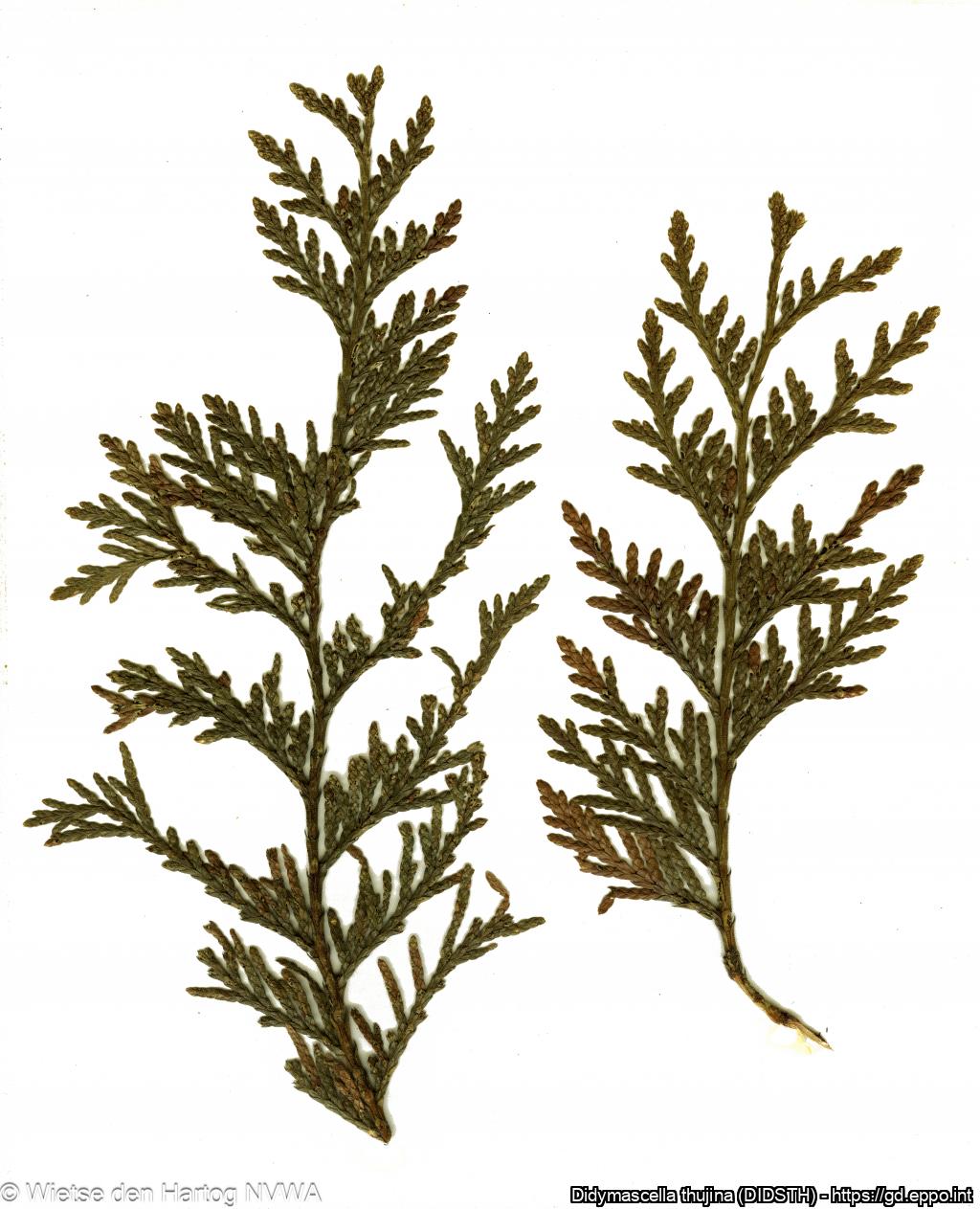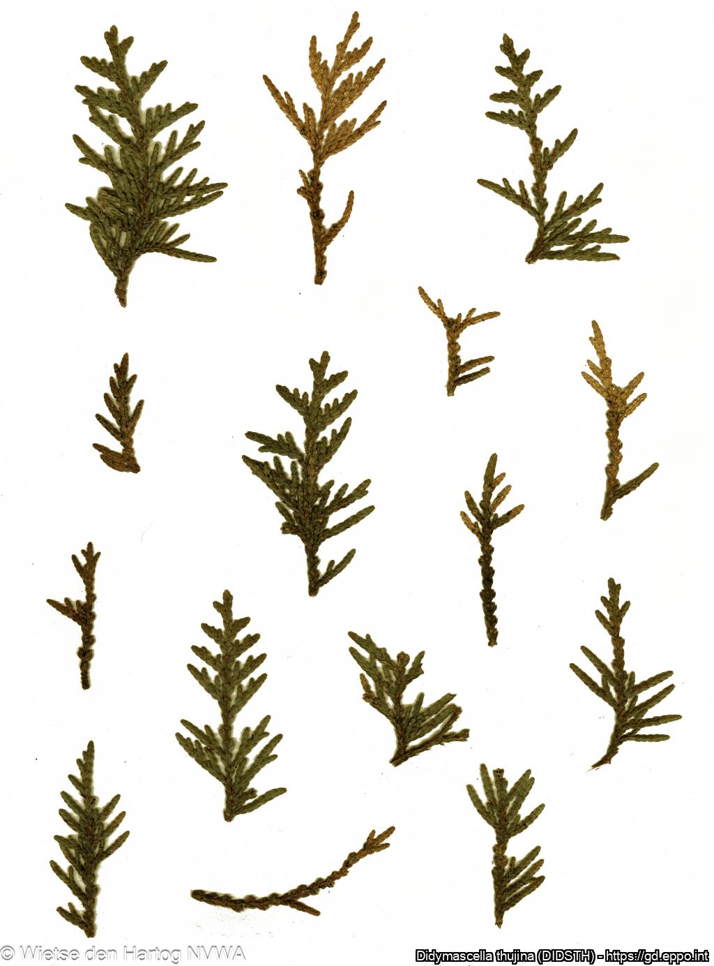 Didymascella thujina (DIDSTH) on Thuja plicata (Herbarium material)