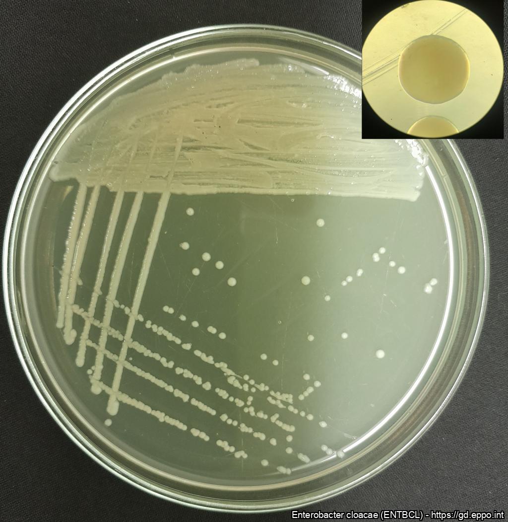Morphology and colony characteristics of Enterobacter hormaechei (Enterobacter cloacae complex) on YPGA medium.