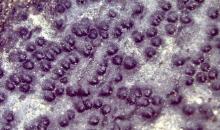 Stroma under stereomicroscope: ostioles inconspicuous to slightly prominent, giving a finely punctate appearance