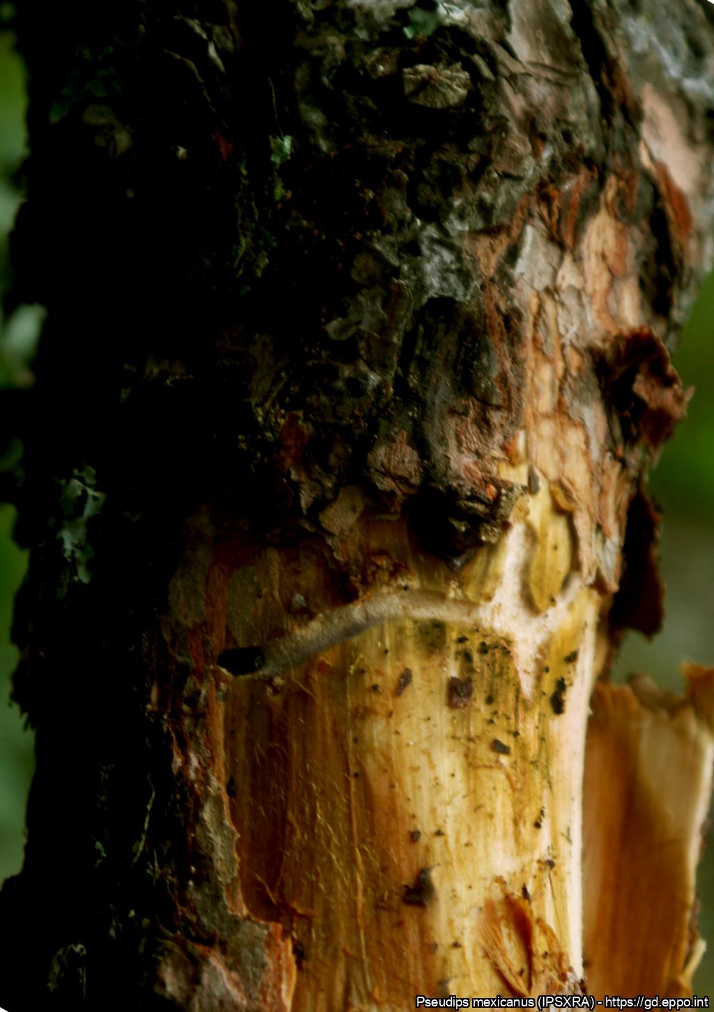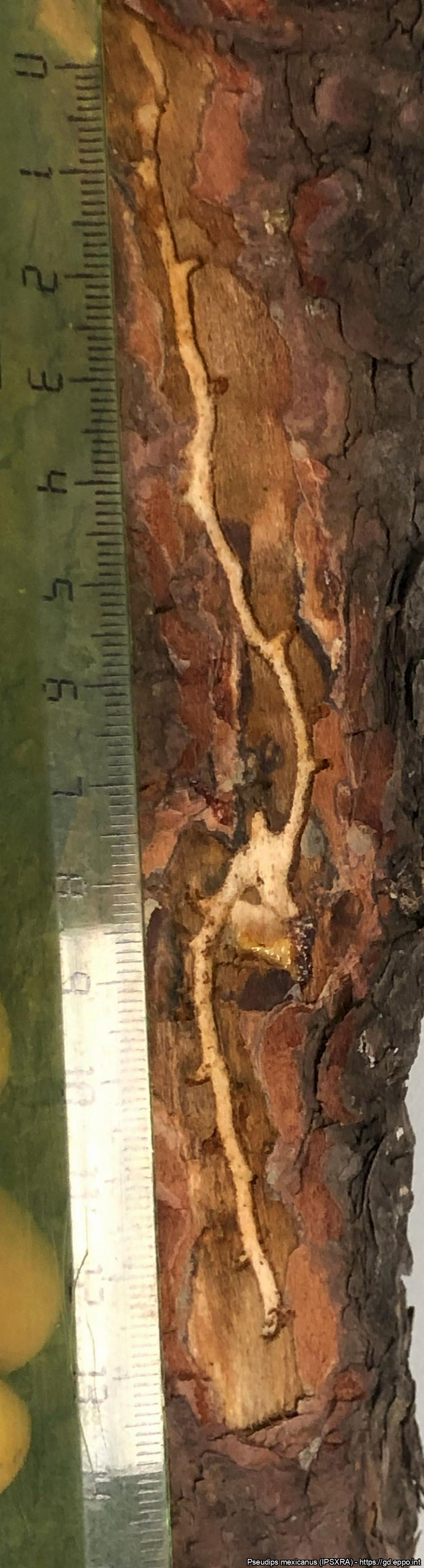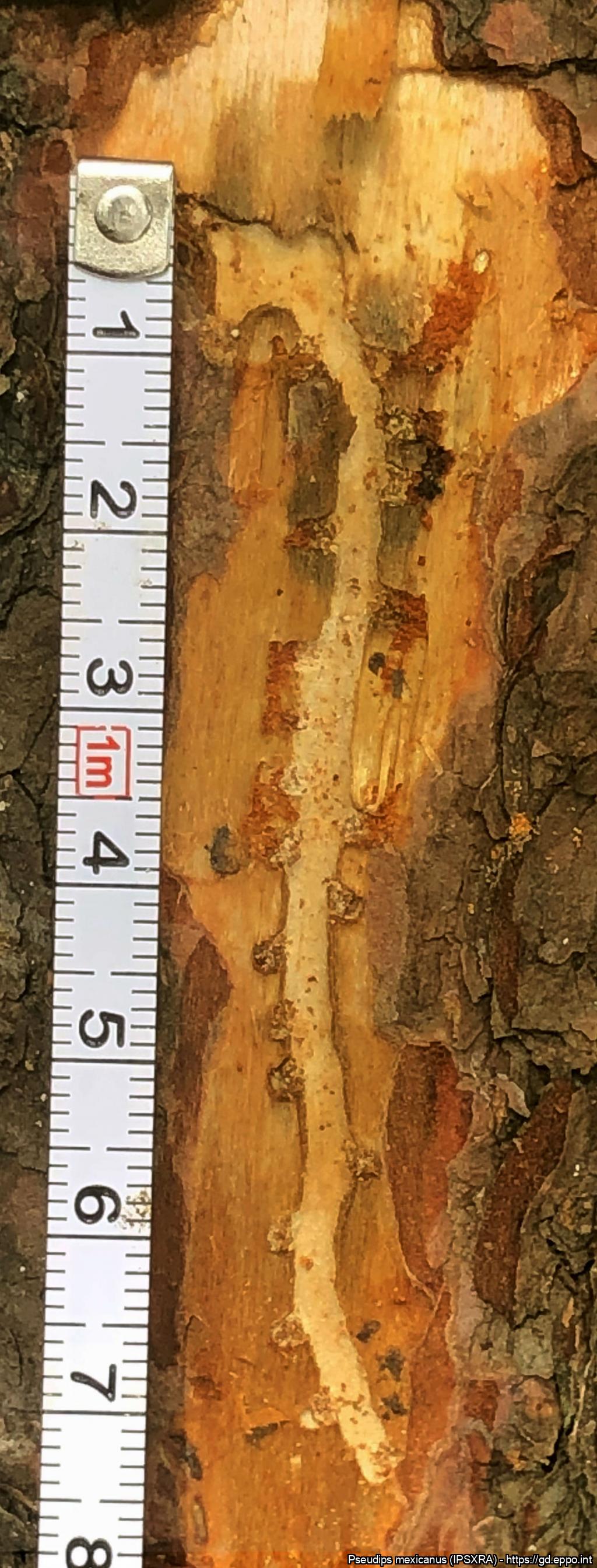 Pseudips mexicanus (Hopkins, 1905), gallery, 60 km SWW of Ciudad Victoria, 23°37’28’’ N, 99°42’39’ W H = 2520 m.a.s.l., 17.VII.2025 A.V. Petrov. On Pinus sp.