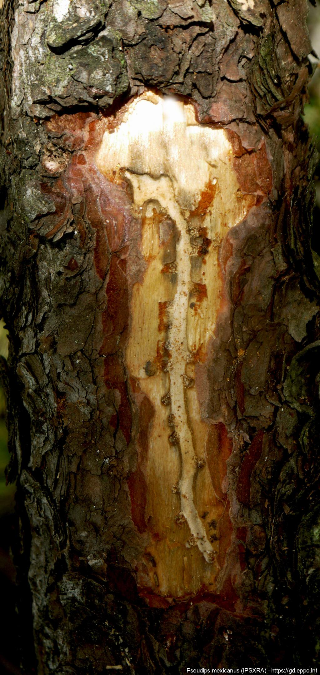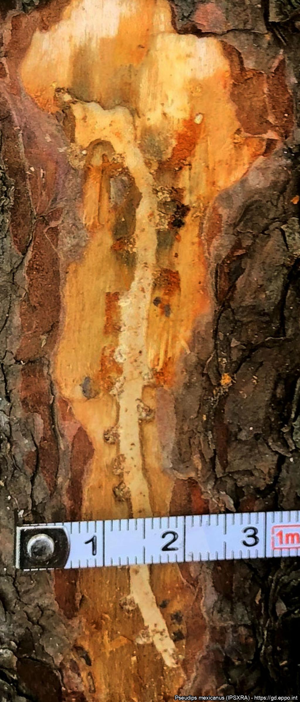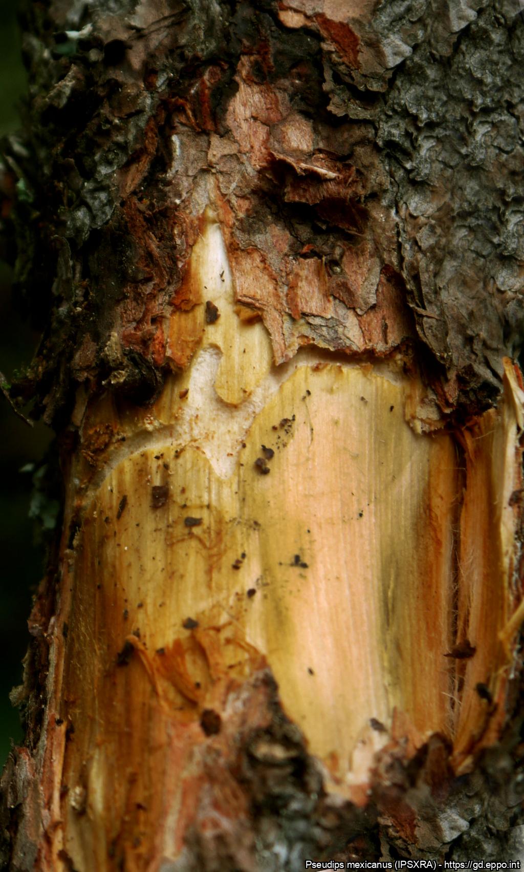 Pseudips mexicanus (Hopkins, 1905), gallery, 60 km SWW of Ciudad Victoria, 23°37’28’’ N, 99°42’39’ W H = 2520 m.a.s.l., 17.VII.2025 A.V. Petrov. On Pinus sp.