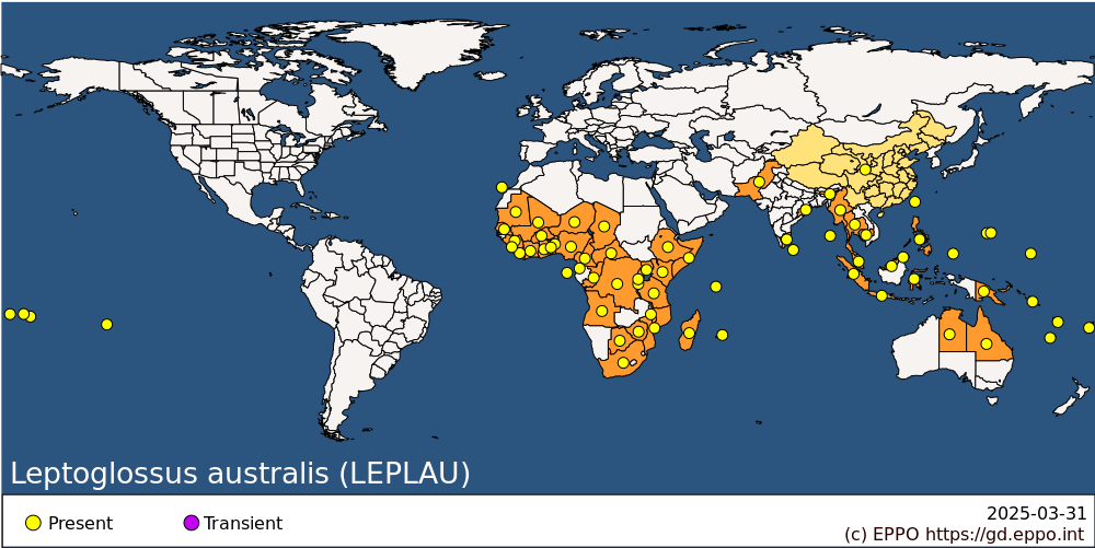 | Oceania | American Samoa | Present, restricted distribution | ||
