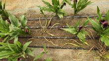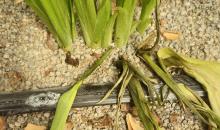 Field symptoms of soft rot disease on calla lily (Zantedeschia sp.) caused by Pectobacterium aroidearum.