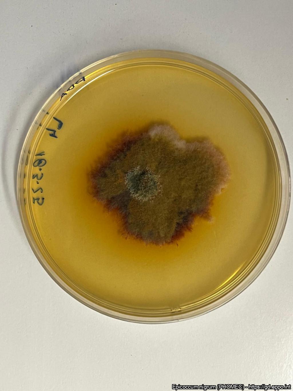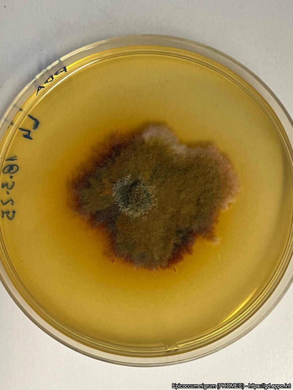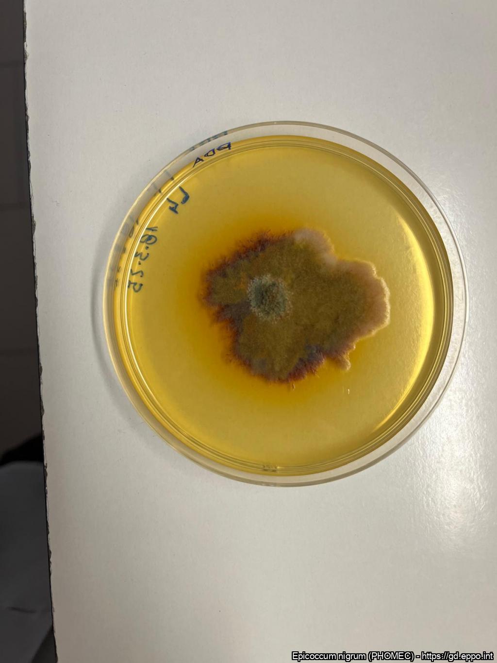 PDA plates of the fungus Epicoccum nigrum, collected from cherry trees in Georgia. Georgia 2025