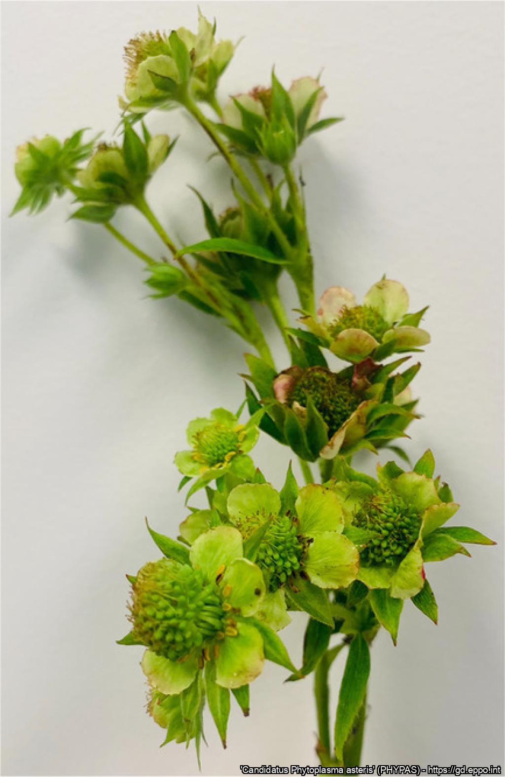 Symptoms of flower greening and phyllody associated with the strawberry green petal disease phytoplasma in Quebec, Canada