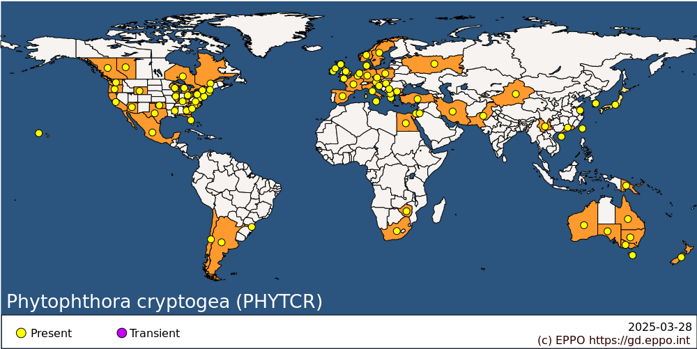 | Asia | Iran, Islamic Republic of | Present, widespread | ||
