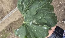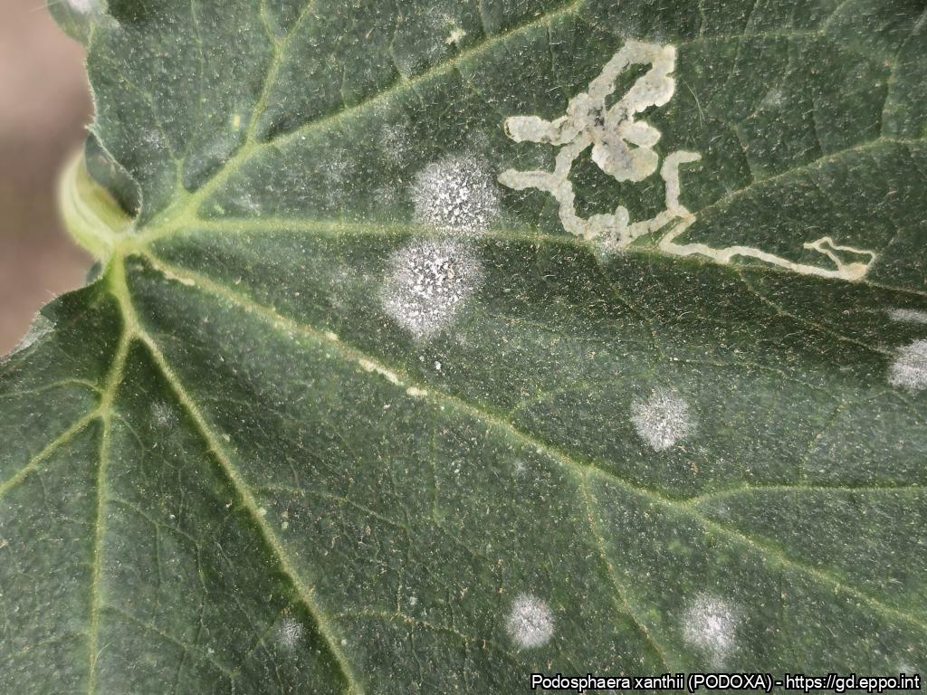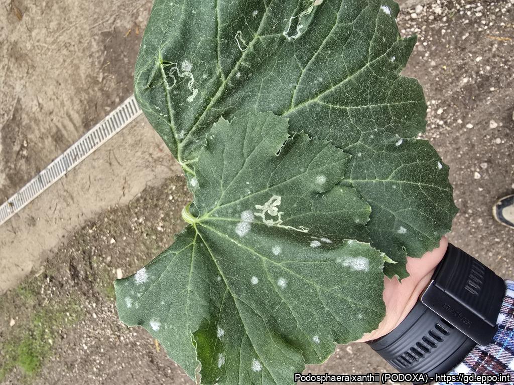 Presence of the powder caused by the fungus on zucchini leaf (Campania Region — Province of Salerno — October 2025)