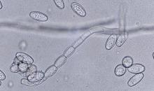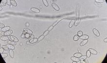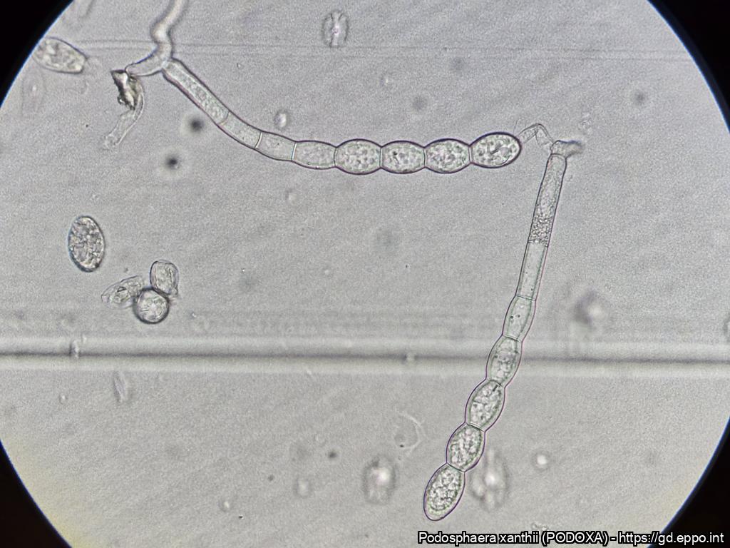 Conidiophores and conidia found on zucchini leaves. (Campania Region — Province of Salerno — October 2025)