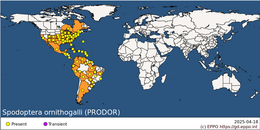 S. ornithogalli (North and Central America) and S. marima (South America) have recently been considered to be a single species.