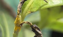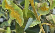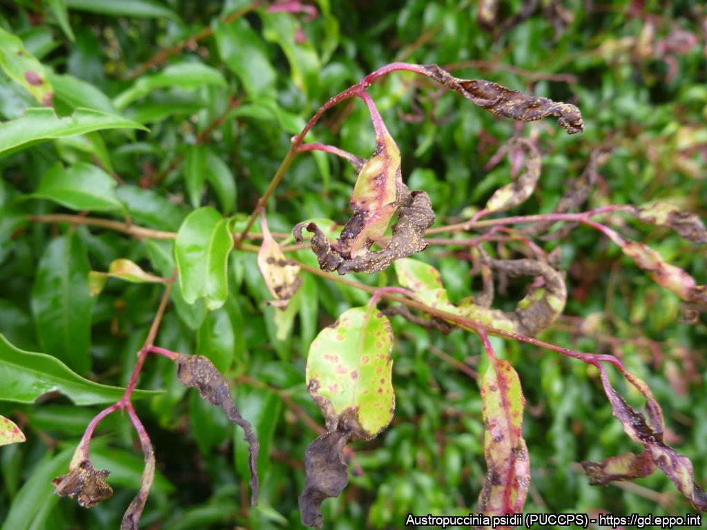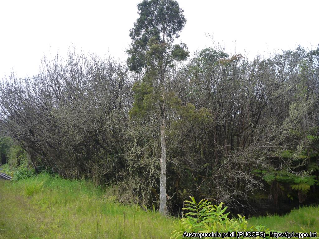 Dieback of Syzygium jambos in Hawaii associated with repeated severe infection by Austropuccinia psidii.