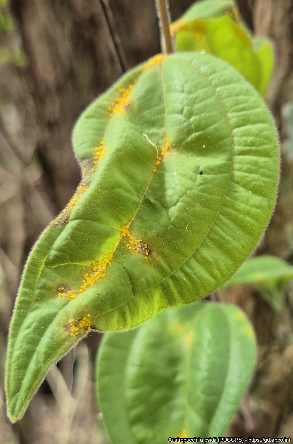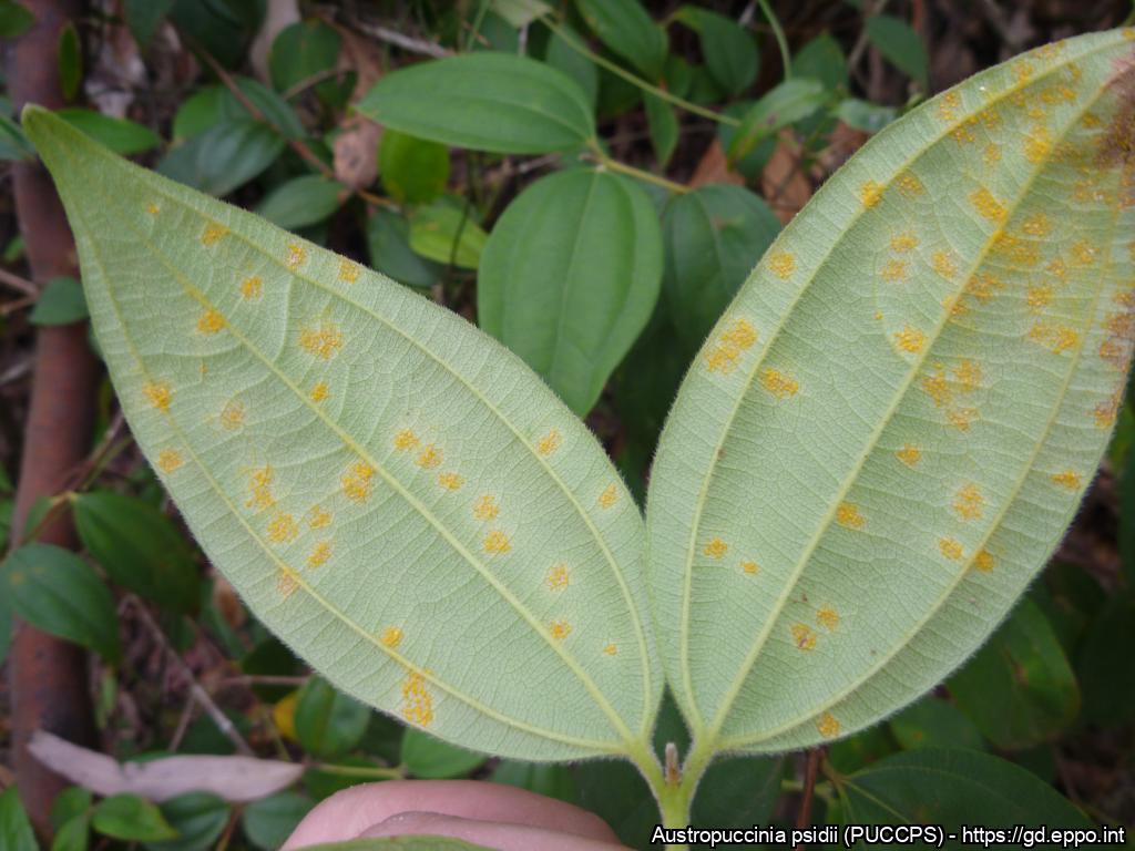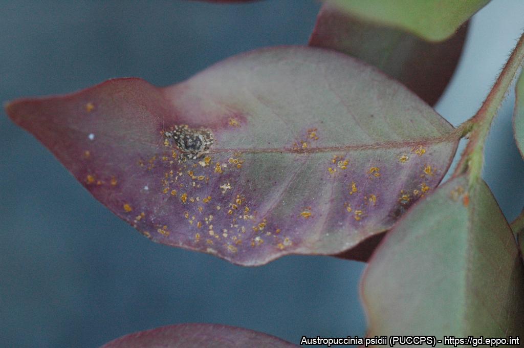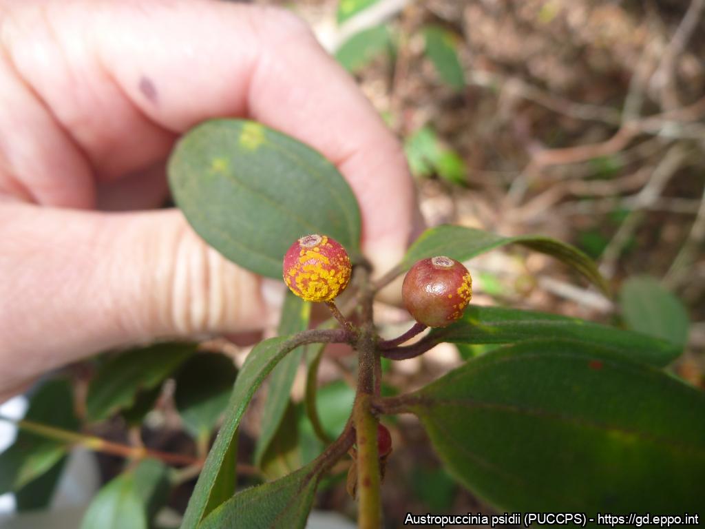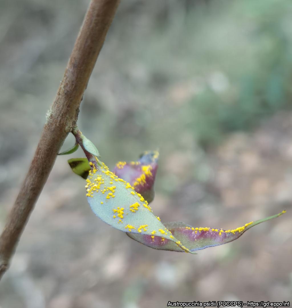 Austropuccinia psidii on Rhodomyrtus psidioides (almost extinct), Queensland, Australia