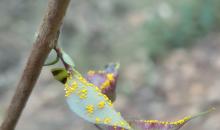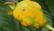 Fruit of Rhodamnia rubescens in Australia infected with Austropuccinia psidii.