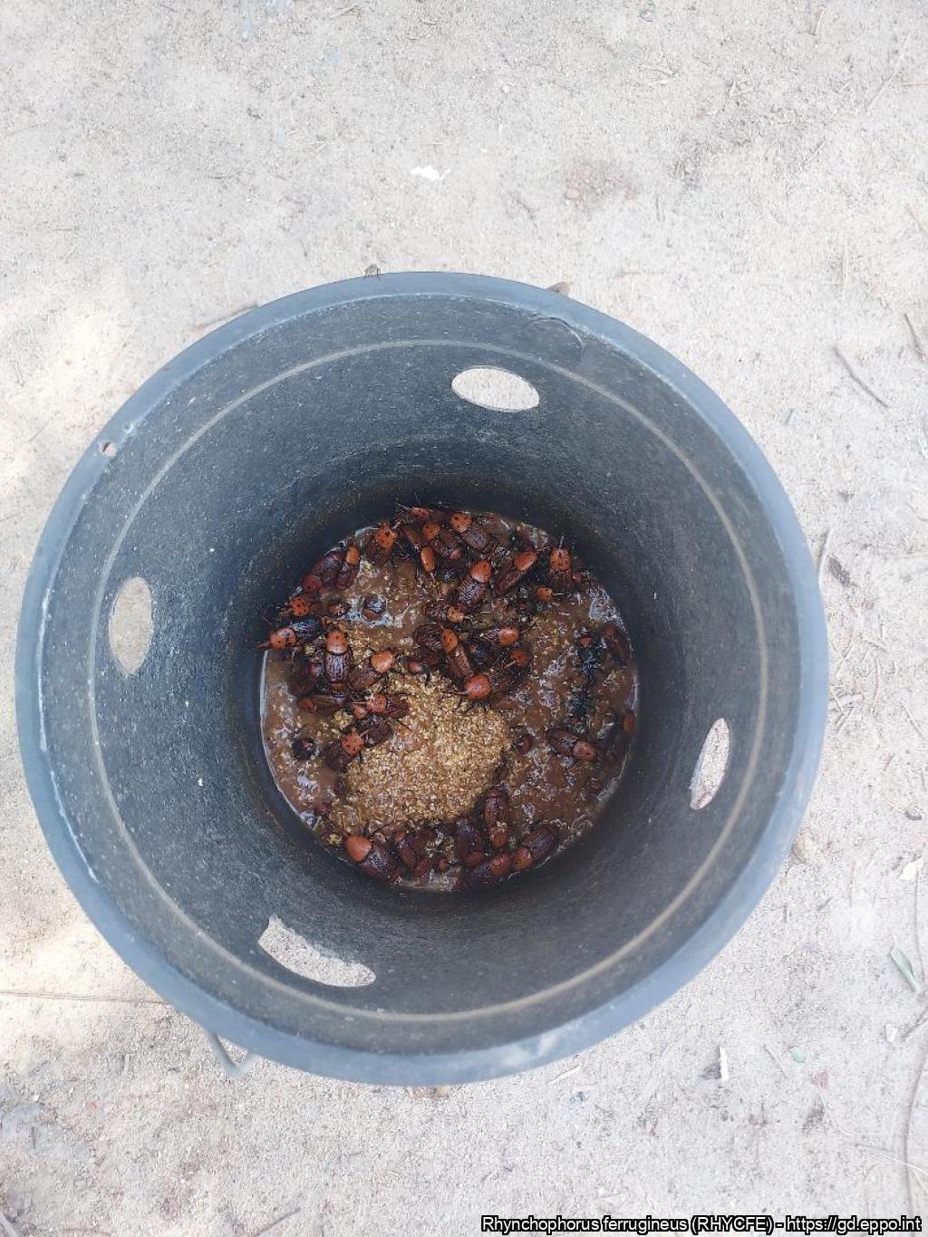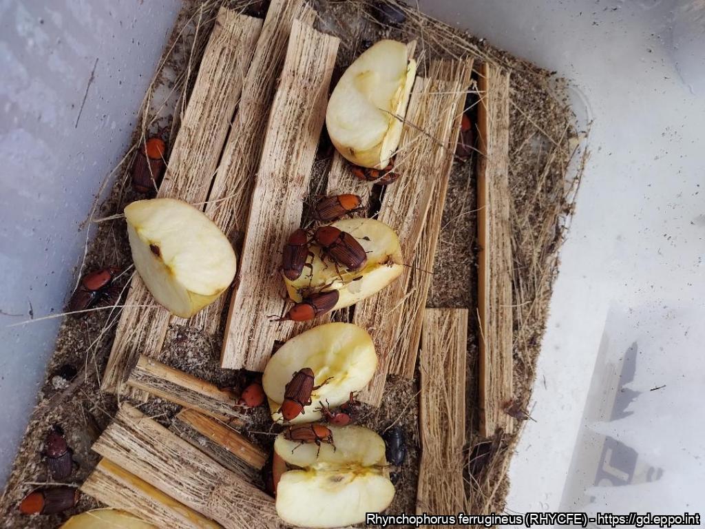 Experimental set up for an efficacy test against R. ferrugineus under controlled environment