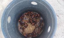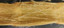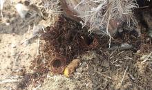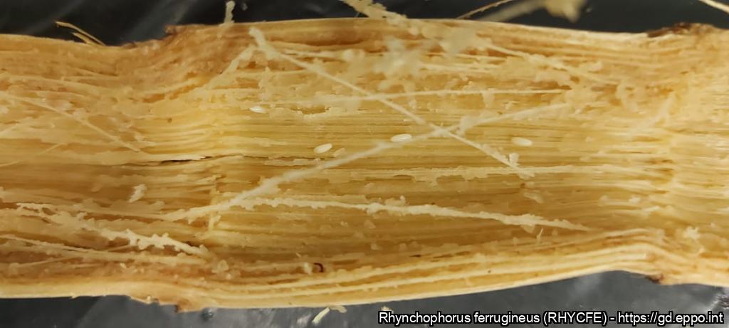 Smashed mushy date palm tissues caused by red palm weevil larval feeding activity