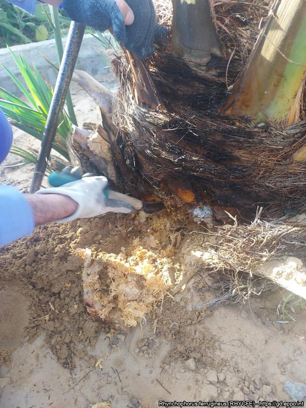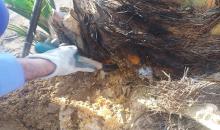 Microinjection treating Red Palm Weevil inside a date palm trunk.