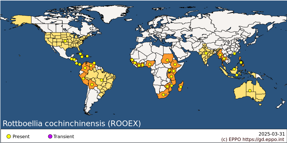 | Africa | Cote d'Ivoire | Present, restricted distribution | ||