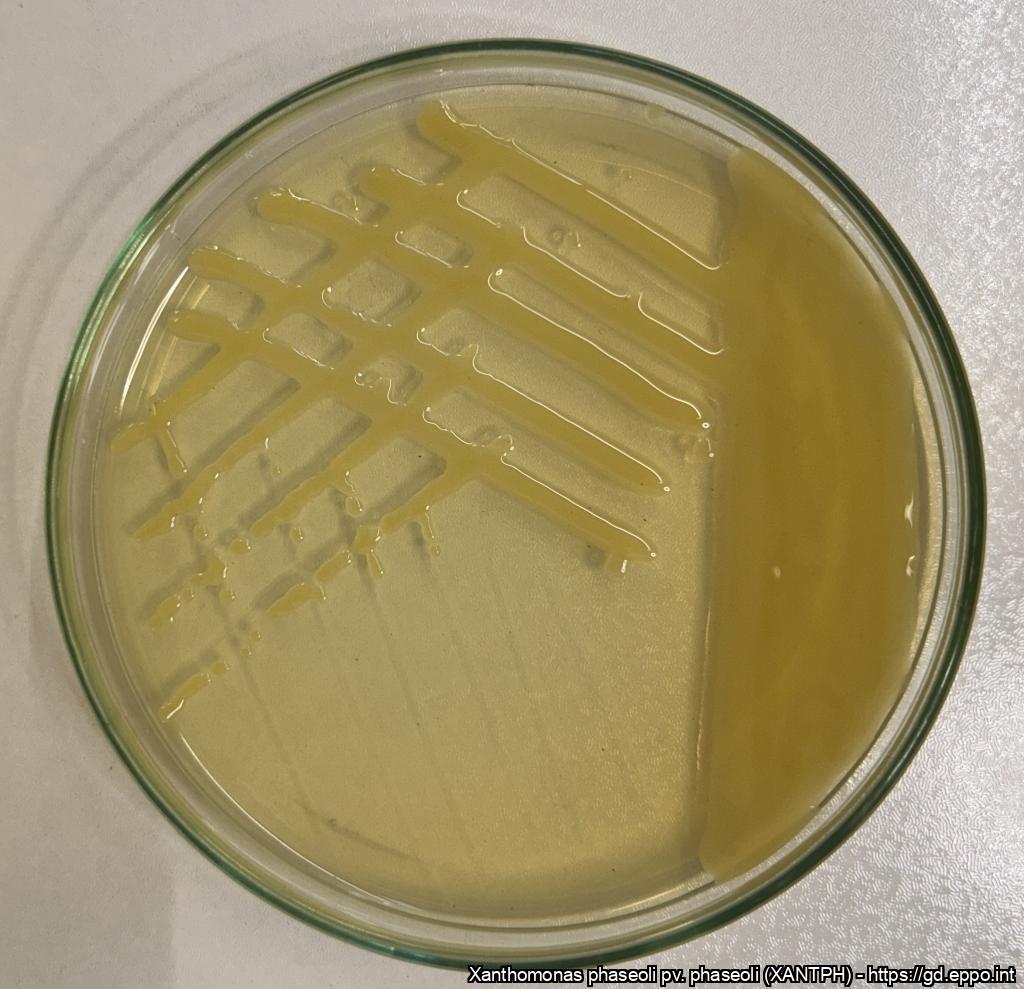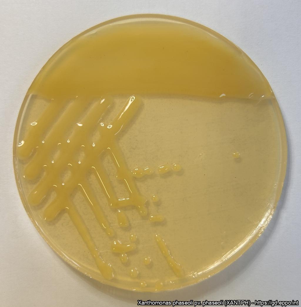Morphology and colony characteristics of Xanthomonas phaseoli pv. phaseoli on YPGA medium.