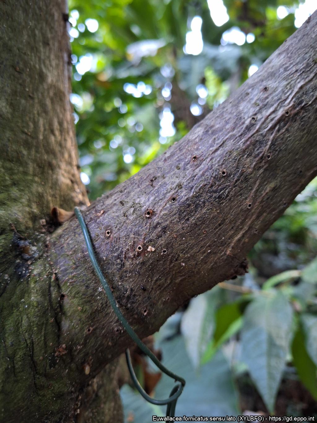 Bore holes and resin droplets on Magnolia champaca of Euwallacea fornicatus sensu lato