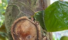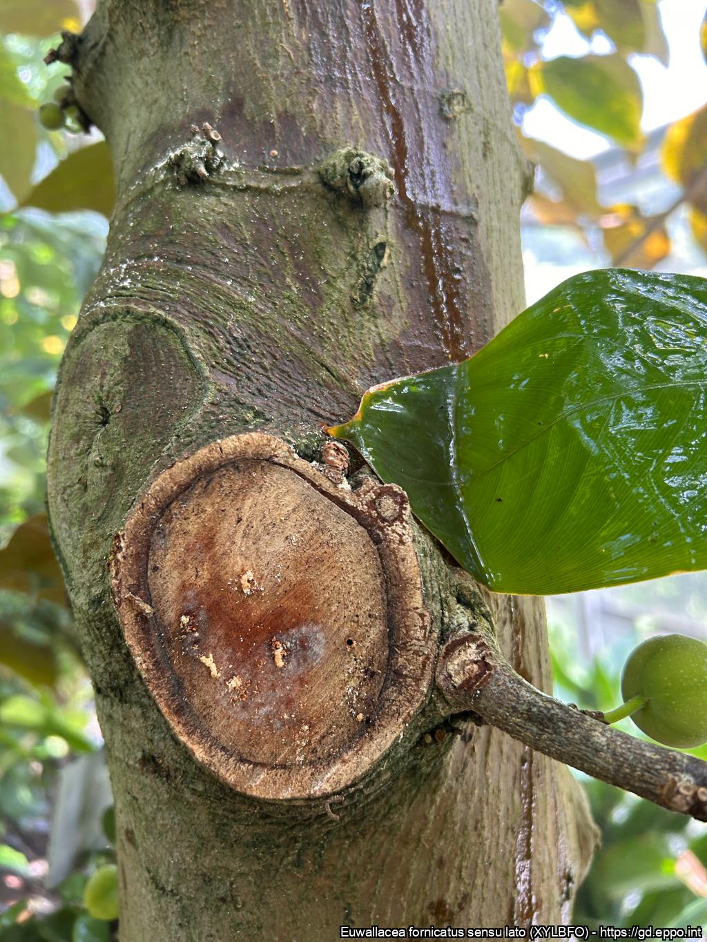 Magnolia champaca after sampling for Euwallacea fornicatus sensu lato with signs of Neocosmospora euwallaceae